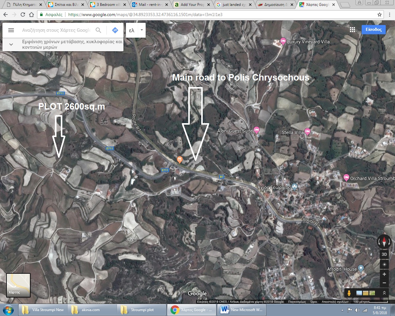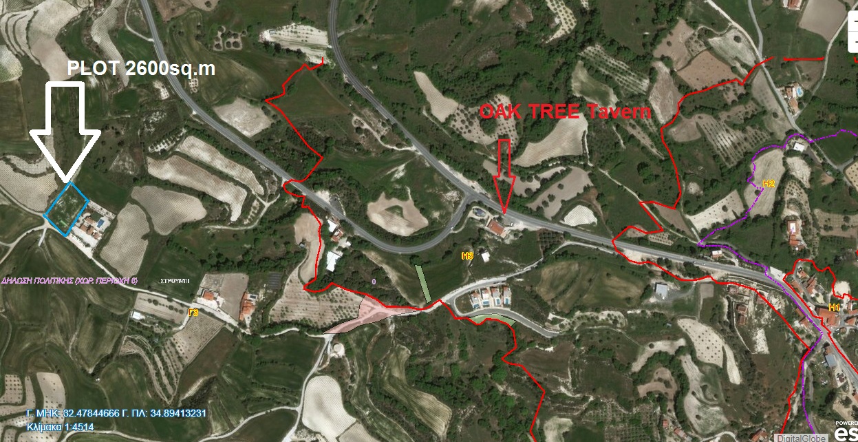 The plot is located a few metres up to the hill, of the main street to Kathikas village. A few metres of the plot is the OAK Tavern.